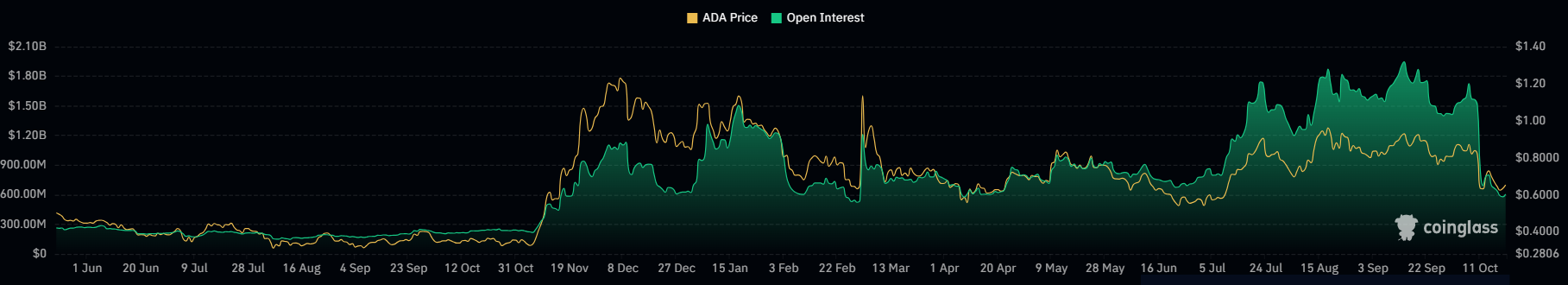 Kinerja derivatif ADA juga mencerminkan meningkatnya minat investor. Berdasarkan data CoinGlass, volume perdagangan derivatif melonjak 107 persen menjadi US$1,43 miliar, sedangkan open interest naik 2,22 persen menjadi US$593,16 juta.