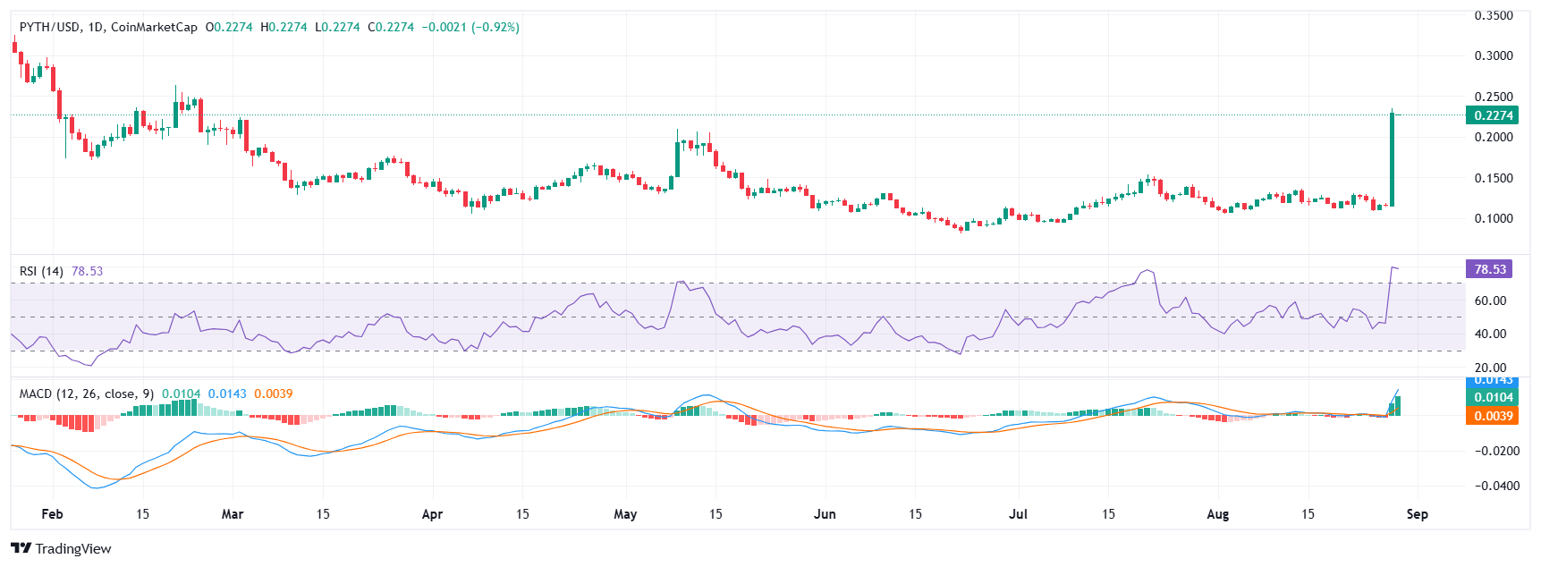 Altcoin Pyth Network (PYTH) telah melonjak 70,13 persen dalam 24 jam terakhir setelah Departemen Perdagangan AS mengumumkan langkah strategis memublikasikan data Produk Domestik Bruto (GDP) kuartalan secara on-chain.
