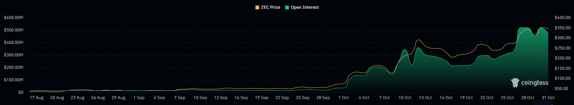 Efeknya terasa di pasar derivatif. Berdasarkan data CoinGlass, volume perdagangan ZEC melonjak 28,19 persen menjadi US$2,87 miliar, sementara open interest meningkat 17,40 persen menjadi US$545,27 juta.