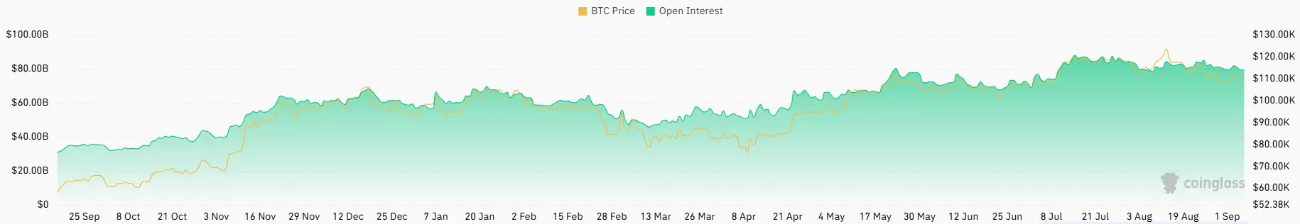 Tren arus kas tersebut diperkuat dengan data derivatif di CoinGlass. Volume perdagangan Bitcoin anjlok 54,54 persen menjadi US$51,04 miliar.
