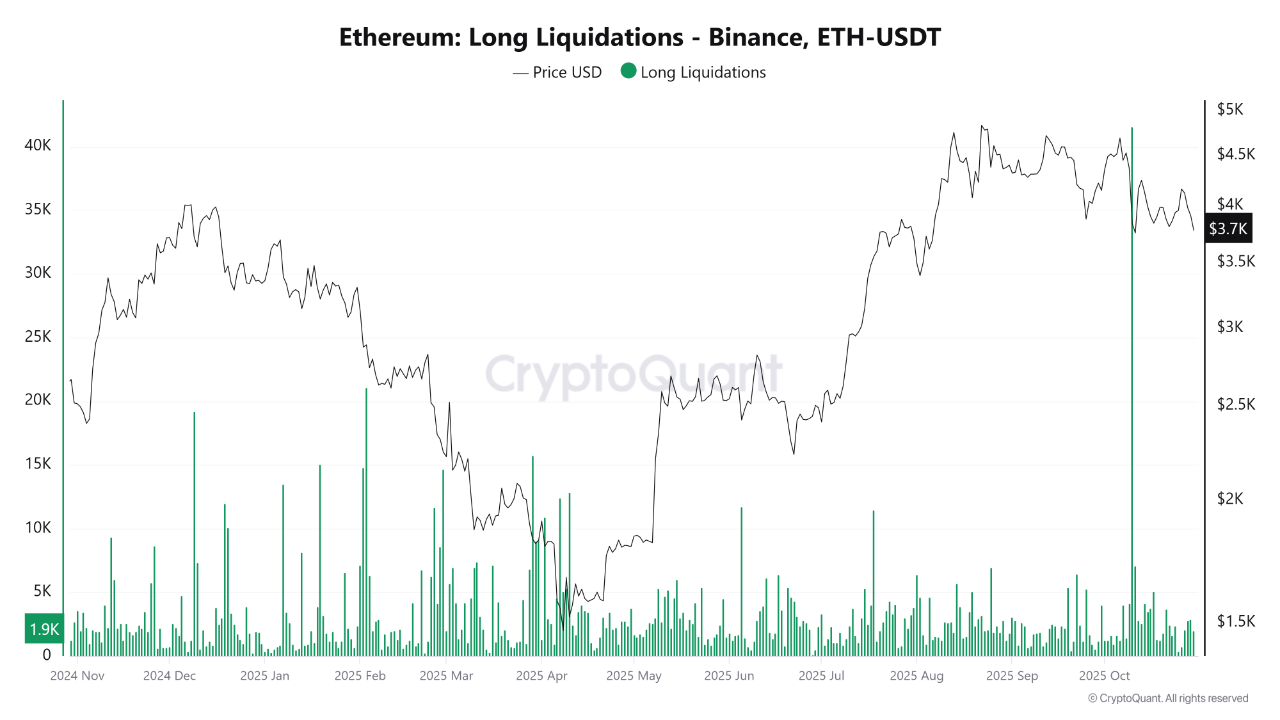 PelinayPA menyoroti bahwa setelah lonjakan likuidasi long terakhir, harga Ethereum masih belum menunjukkan tanda pemulihan yang berarti. Ketiadaan dorongan beli baru menandakan bahwa tekanan dari aksi jual tersebut belum terserap sepenuhnya oleh pasar.