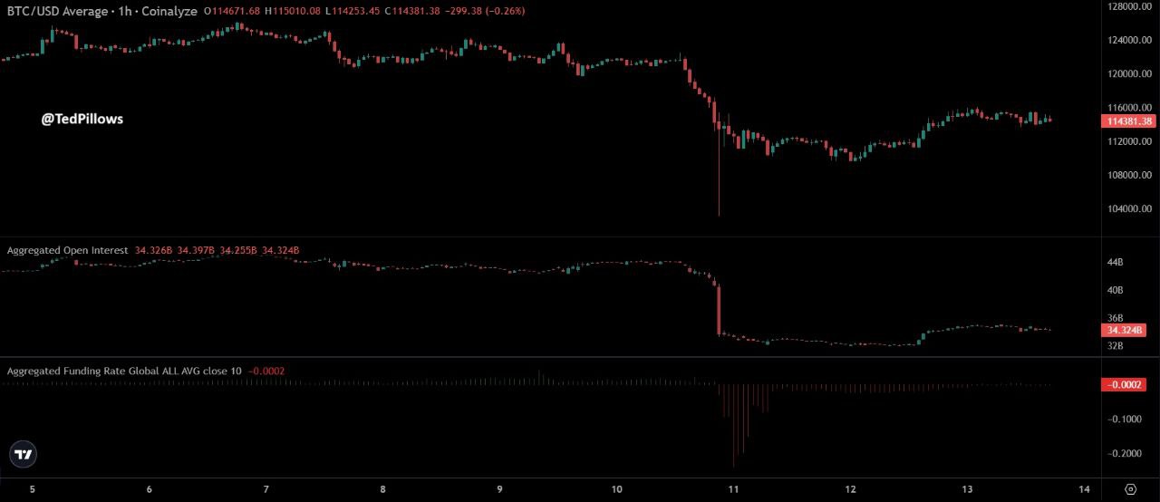 Menurut Trading Heights, fenomena ini ditandai dengan penurunan open interest dari US$44 miliar menjadi US$34 miliar, menandakan banyak trader yang terpaksa keluar dari pasar akibat tekanan likuidasi.
