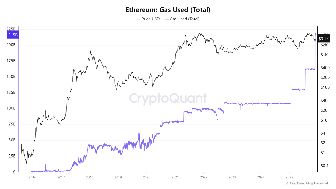 Lonjakan aktivitas terjadi pada 26 November ketika metrik Total Gas Used melonjak dari 165 miliar menjadi 215 miliar, mencetak ATH hanya beberapa hari sebelum upgrade berlangsung.