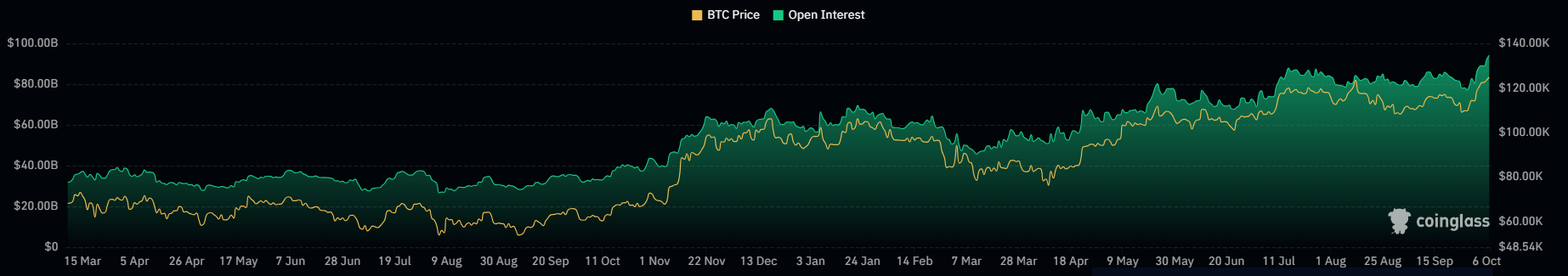 Kenaikan harga BTC terbaru tidak hanya tercermin di pasar spot, tetapi juga di derivatif. Berdasarkan data CoinGlass, volume derivatif dalam 24 jam terakhir turun 14,97 persen menjadi US$103,38 miliar. Namun, open interest masih naik 0,96 persen ke US$93,53 miliar, menandakan posisi terbuka tetap bertahan.