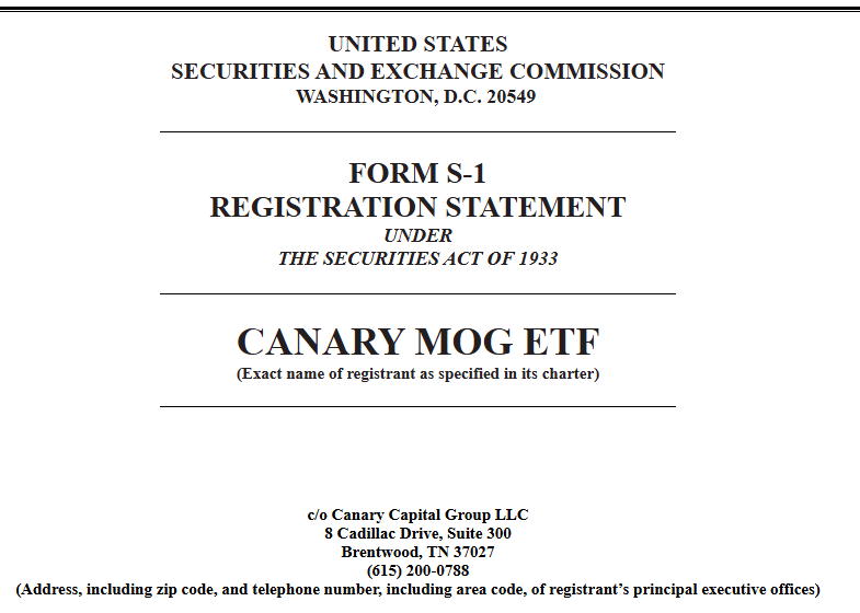 Canary Capital resmi mengajukan dokumen pendaftaran produk Canary MOG ETF kepada otoritas bursa AS, menjadikannya salah satu upaya pertama di pasar untuk menghadirkan ETF yang melacak langsung harga meme coin MOG.