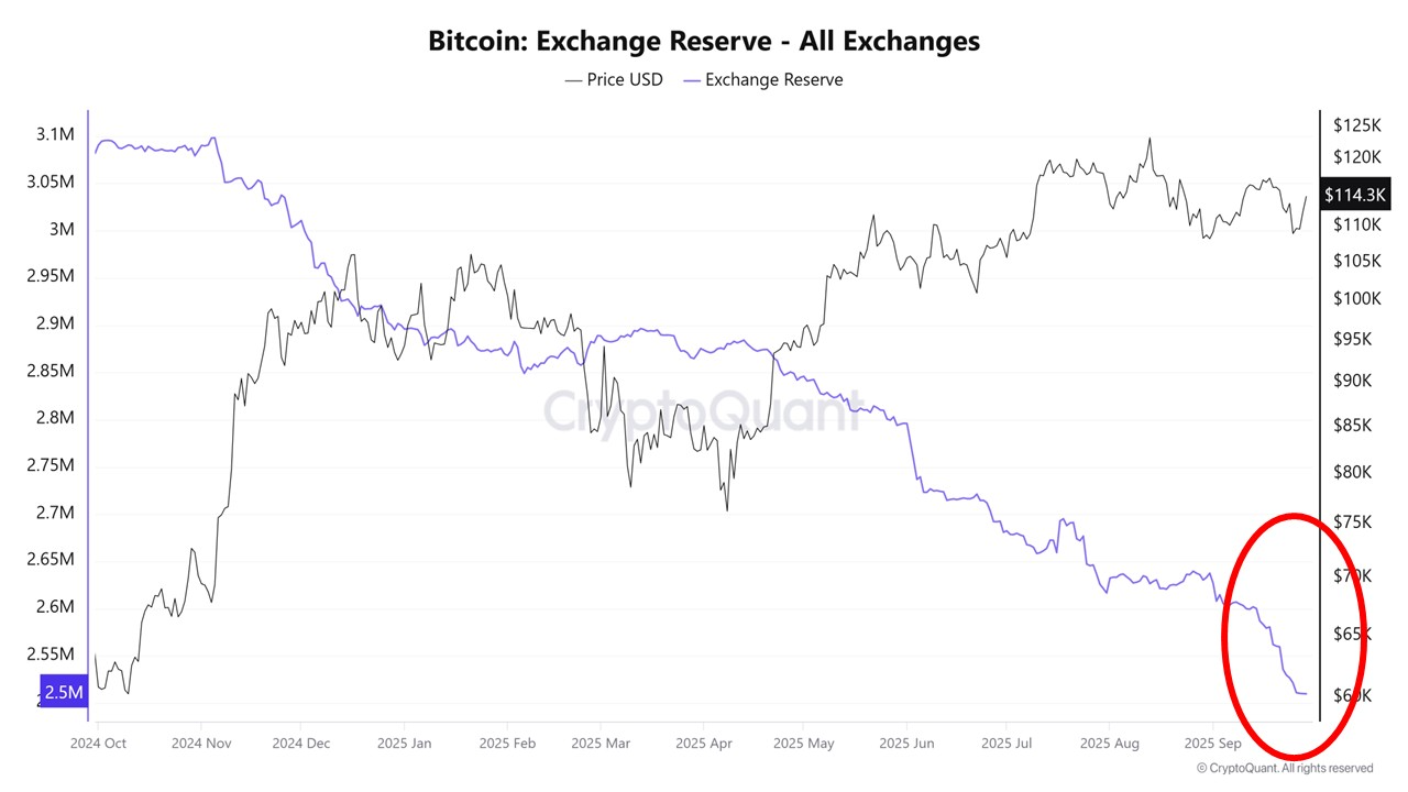 Data on-chain juga mengonfirmasi perubahan struktural tersebut. Cadangan Bitcoin di bursa menurun tajam karena investor memindahkan aset ke penyimpanan jangka panjang, yang secara otomatis mengurangi tekanan jual.