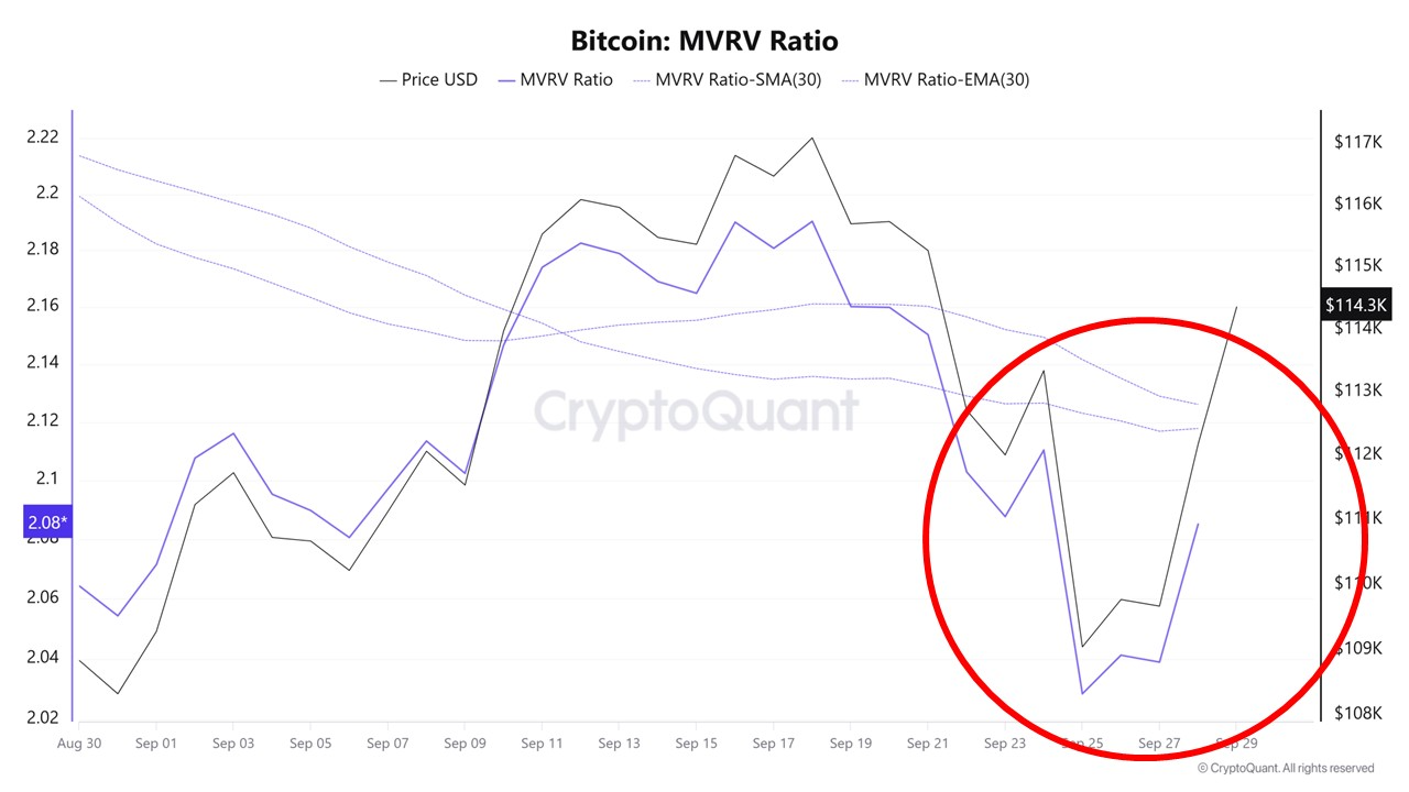 Pada saat yang sama, rasio MVRV yang sempat turun saat fase kapitulasi kembali pulih, menandakan investor melihat Bitcoin kembali berada pada level undervalued.