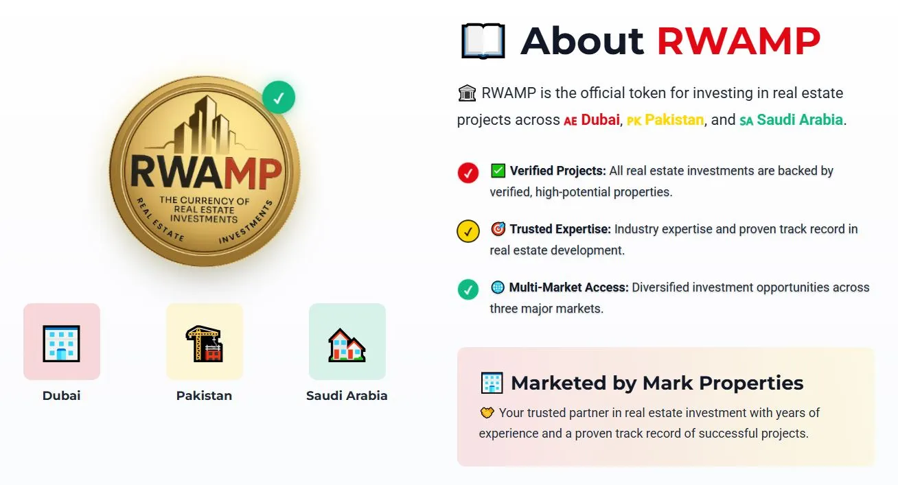 Aset properti yang menjadi dasar RWAMP tersebar di pasar berpotensi tinggi seperti Dubai, Pakistan, dan Arab Saudi. Seluruh proyek didukung oleh pengembang Mark Properties yang memiliki rekam jejak panjang di sektor real estate kawasan tersebut.