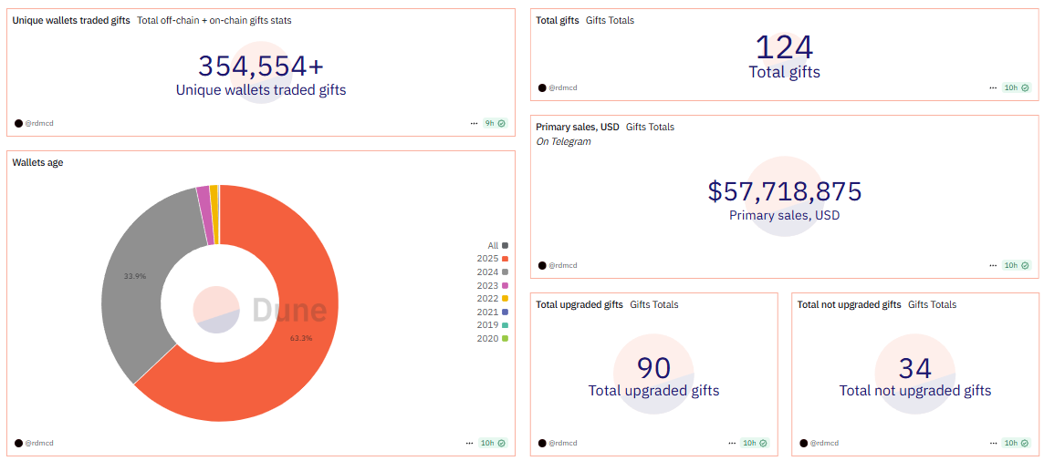 Menurut data terbaru dari dasbor analitik Dune, angka tersebut mencerminkan akumulasi penjualan langsung di dalam aplikasi Telegram, sebelum NFT diperdagangkan kembali di marketplace eksternal berbasis blockchain seperti Getgems dan TonDiamonds.