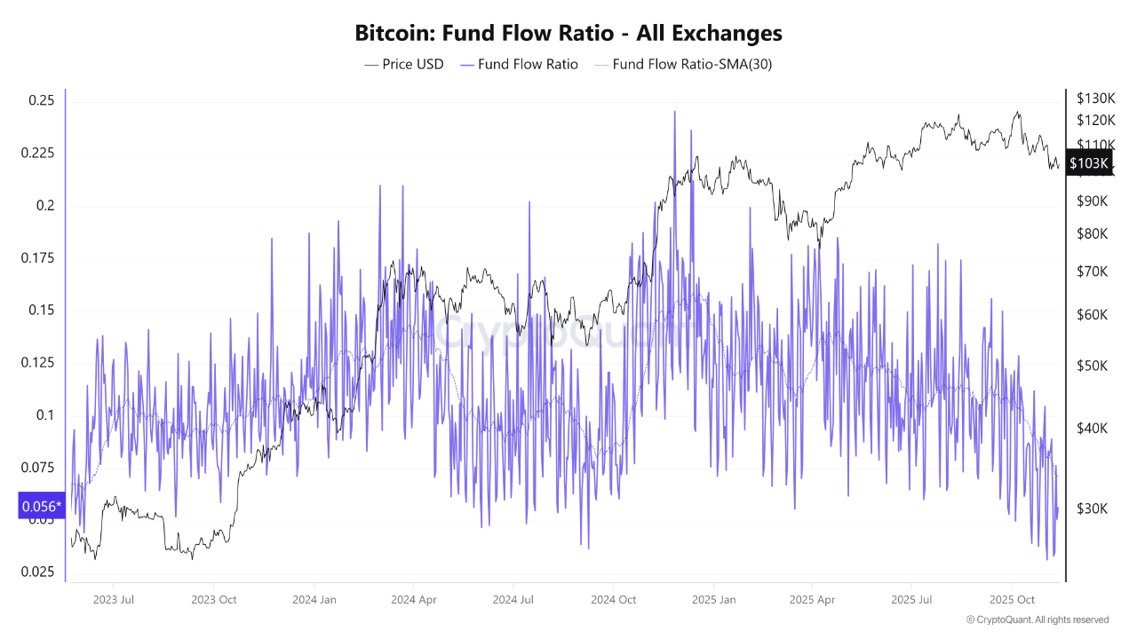 Berdasarkan data on-chain yang dibagikan analis Crazzyblockk di CryptoQuant, fund flow ratio seluruh bursa di bulan ini turun dari 0,073 menjadi 0,058.
